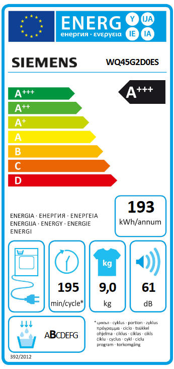 Classificação Energética A+++ - O nossa máquina de secar roupa com maior eficiência energética.